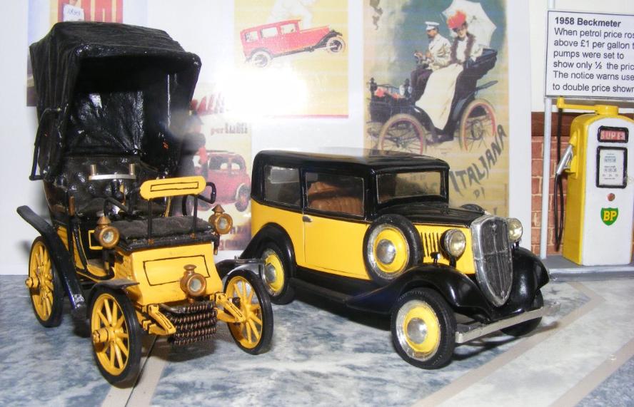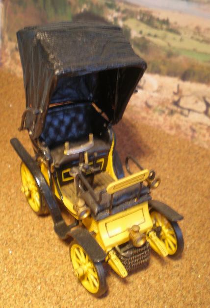 This kit was purchased by Rod on a trip abroad and built in the mid 1960's. It has been detailed in various ways most notably the scratch built front mounted tube radiator and the cloth hood. Originally Rod made a hand sewn leatherette hood for this model, but it degraded over the years and was removed in the 2000s to be replaced with a doped tissue hood. All painting is by brush, applying Humbrol enamels throughout.