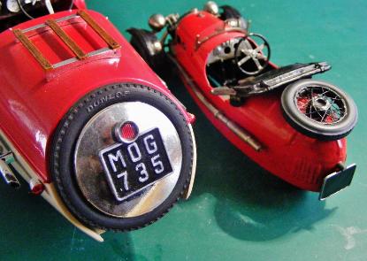 The Photo's above show not only the difference in size from 1/24th scale (smaller of the two) to 1/16th scale and the main difference between the 1934 Beetleback and the 1935 barrelback designs.