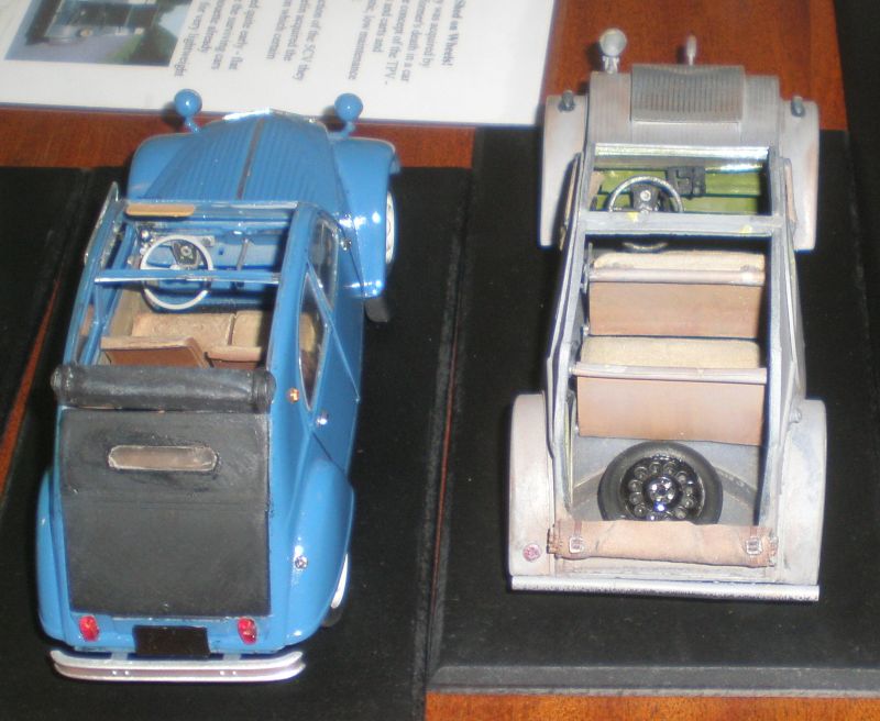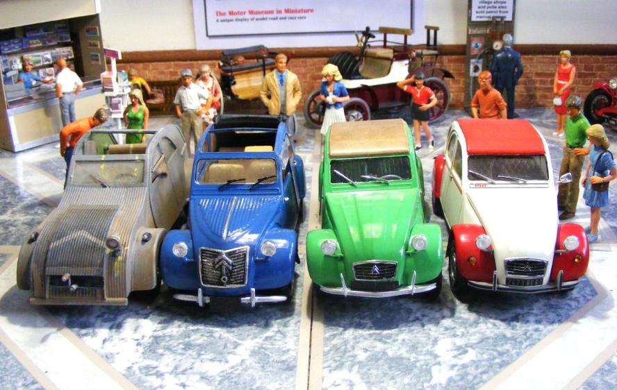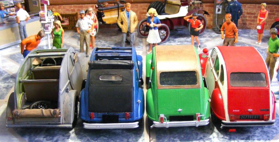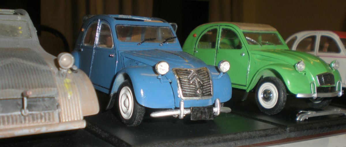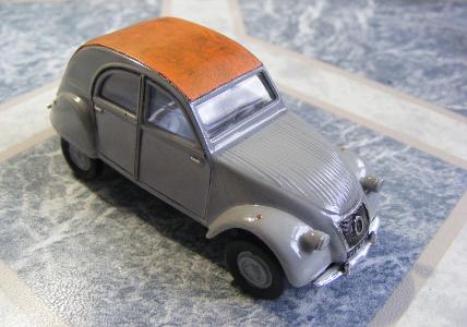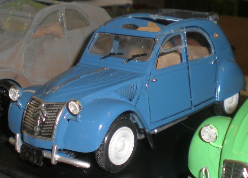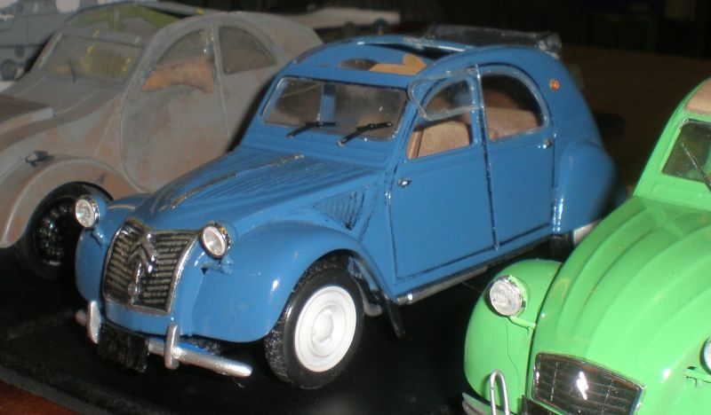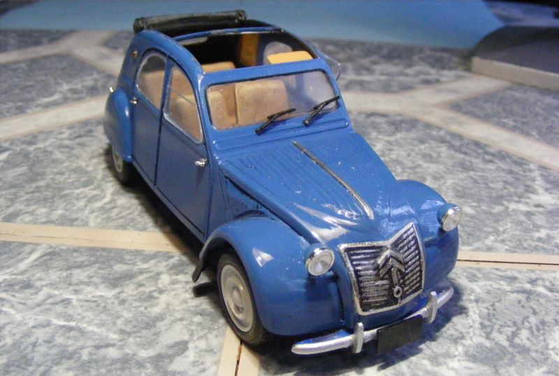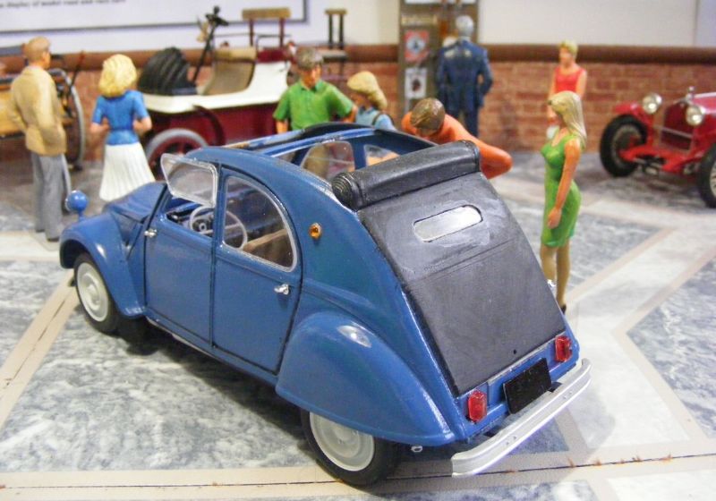 The 1/24th scale ripple bonnet 2cv was converted by Rod from the Heller 1/24th scale kit, # 80765. That kit was first released in 1991, followed by the Airfix 06417 release in 1992 as the Citroen Dolly (which has also built). In true Heller fashion the kit has been re-released a further 10 times through to the 2020s. It has clearly been a popular kit, but this is largely due to its fair price compared to the far superior (but much rarer), Tamiya kit released in 1995. Detail is acceptable for the price