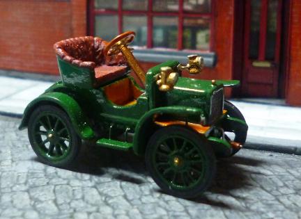 Louis Renault, son of a button manufacturer, turned to cars and built a single cylinder De Dion engine powered prototype with shaft transmission as opposed to the more fashionable chain drive. Intended for his own pleasure it aroused much interest among his friends, who ordered replicas. The car has a unique feature for the period, it could be started from the drivers seat by the crank handle protruding from the dashboard, a feature popular with the lady drivers.